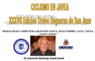 Carrera ciclista. Eixida Neutralitzada: Plaça de la Constitució. Arribada: La Plana (Rest. Amanecer). Organitza: Club Ciclista Jávea i Federació Ciclisme C.V.Col.labora: Regidoria d'Esports