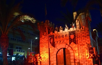 Espectacle amb arcabusseria entre el Bàndol Moro i el Bàndol Cristià a la platja de la Grava i després ambaixada i reconquesta del castell