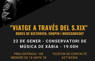 Recital de piano de Vicent Sendra Vilanova que farà un recorregut pel repertori per a piano del segle XIX, des de Beethoven fins a Moussorgsky, mostrant com va canviar el llenguatge musical i també l'ús de l'instrument.