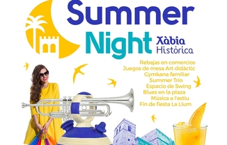 Ja és ací la primera Summer Night de l'estiu. Vine i gaudeix d'una diferent vesprada-nit de compres aprofitant les rebaixes dels comerços. I, a més, comptarem amb balls, gimcana familiar, música en directe i la deliciosa gastronomia de Xàbia Històrica.